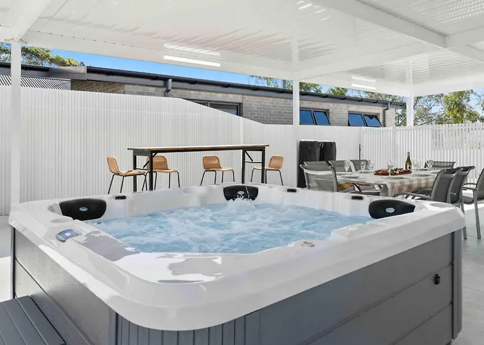Questo luogo dispone di una lavastoviglie e un forno nell'angolo cottura attrezzato per cucinare. Gli ospiti sono invitati a cenare al ristorante Food & More, situato a soli 7 minuti a piedi. L'aeroporto di Wollongong dista 80 km dalla villa, mentre la fermata dell'autobus The Lake Cct at East Cres si trova a 500 metri. La jacuzzi arricchiscono il vostro soggiorno.